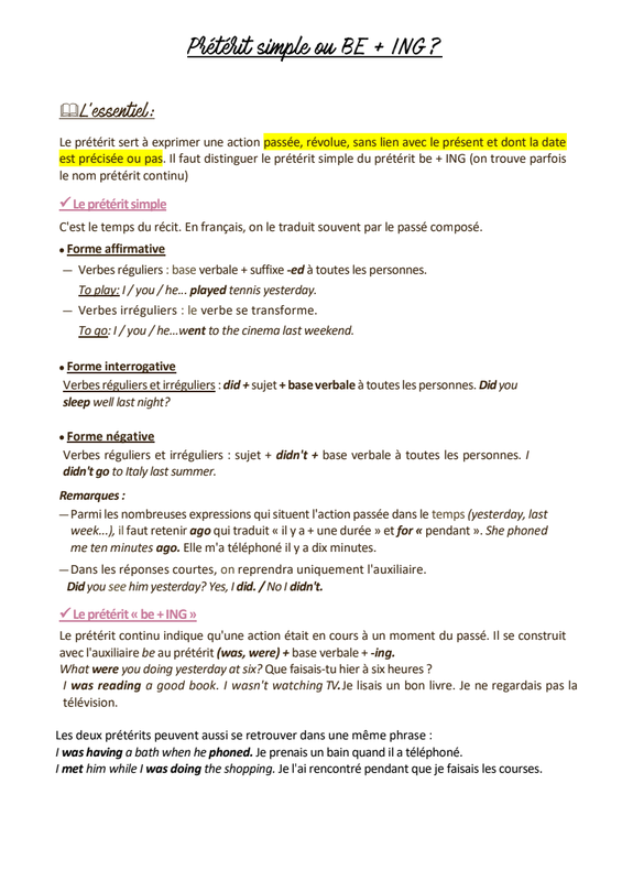 Prétérit Simple Ou Be +Ing
