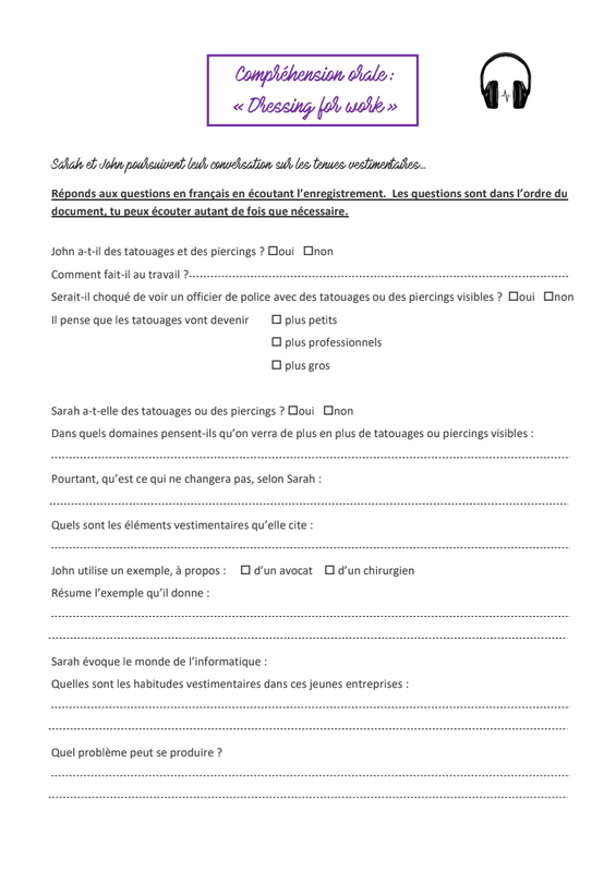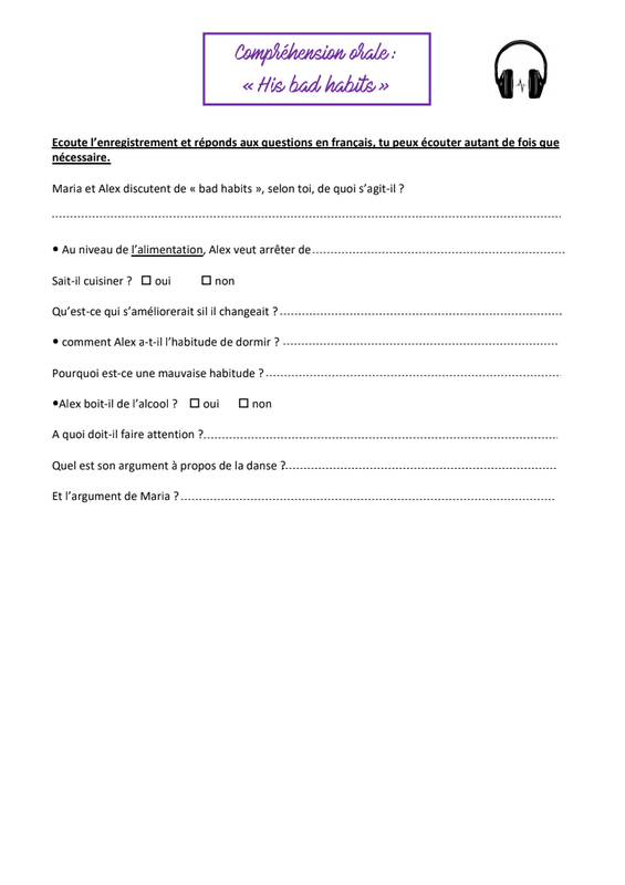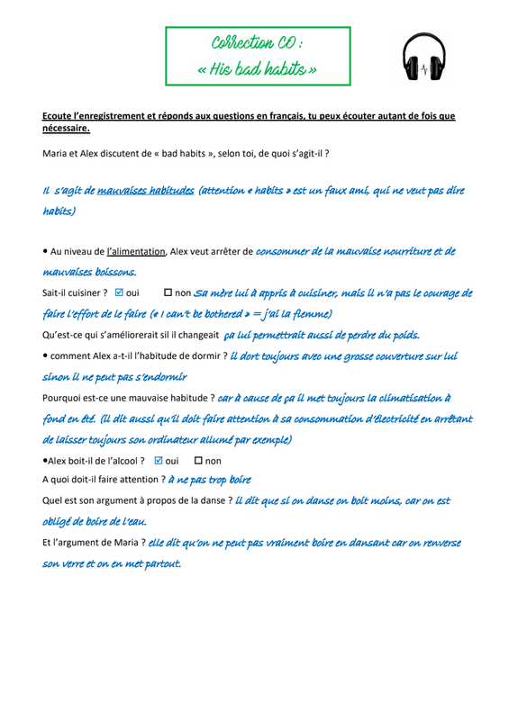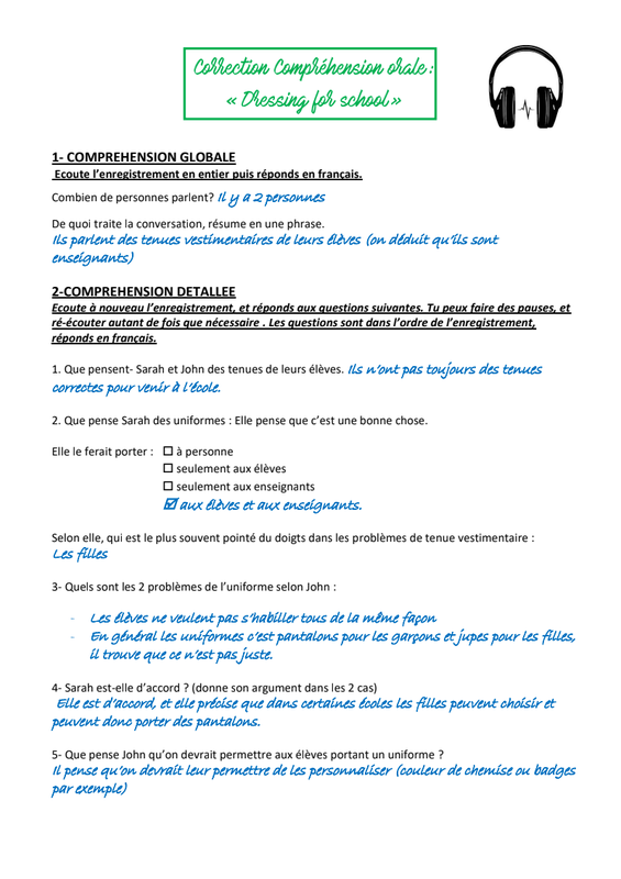 - corriger la compréhension orale de la semaine dernière