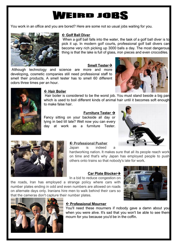 - faire la Compréhension écrite "Weird Jobs"